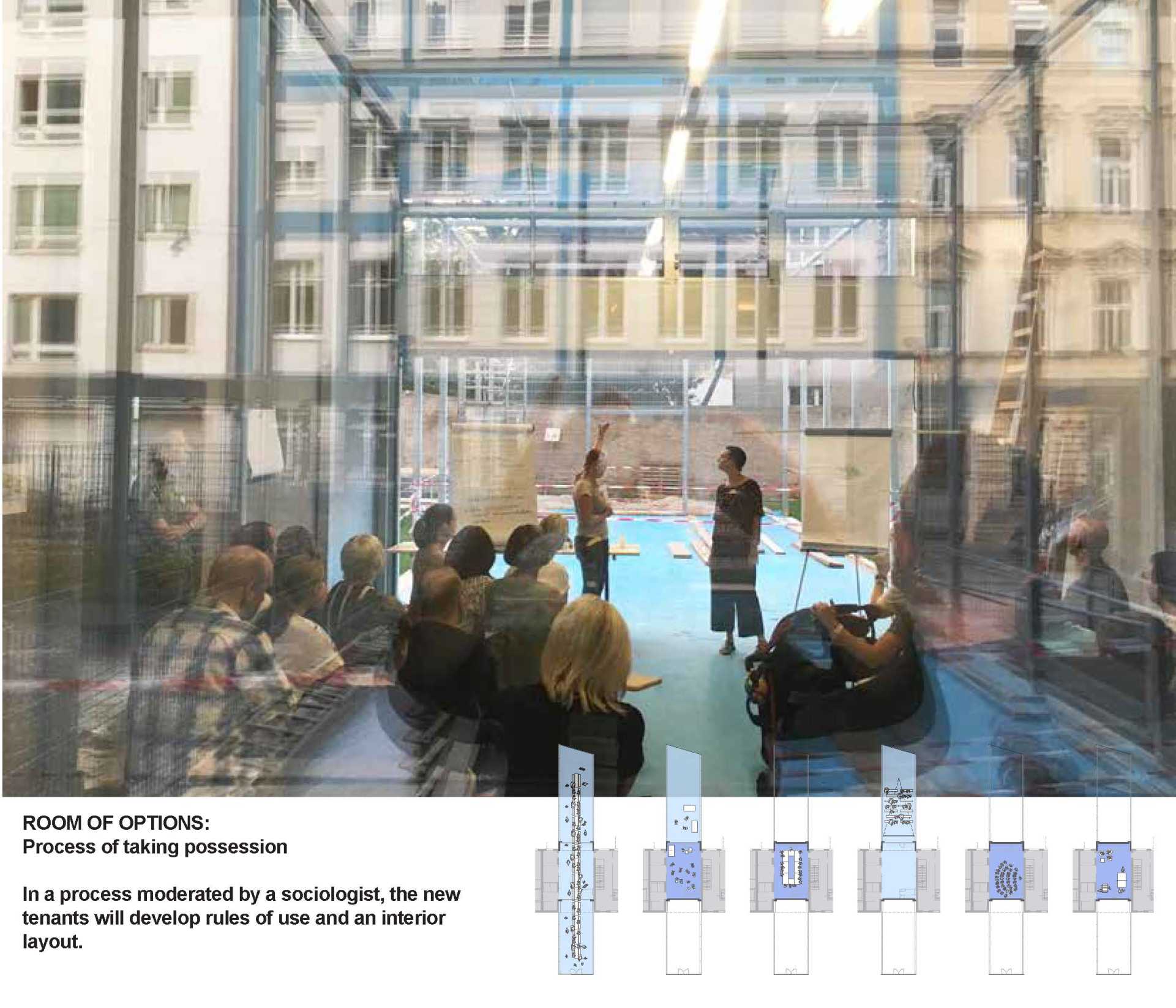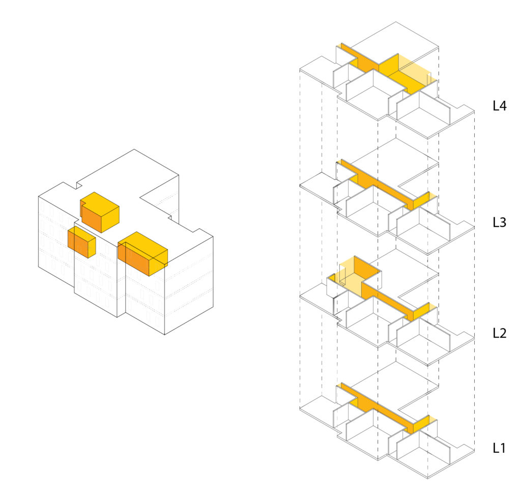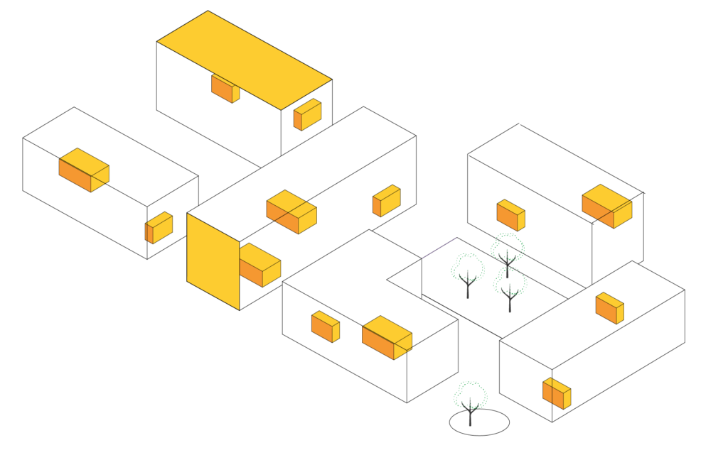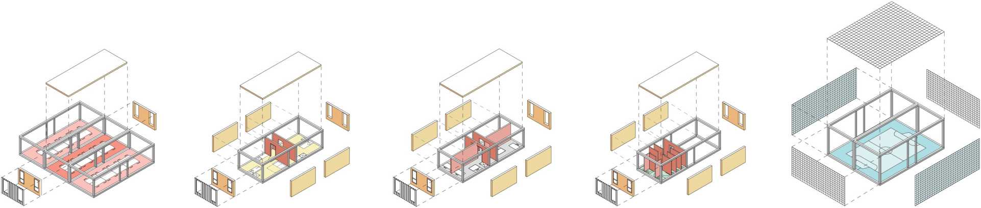 Adattare un edificio preesistente o un lotto libero a un’attività di ospitalità, si rivela comunque un’operazione costosa e non immediata, fattore non compatibile con la disponibilità solo transitoria dei beni in questione. In aggiunta, la destinazione d’uso spesso a carattere non residenziale delle preesistenze, qualora disponibili, e il conseguente notevole impegno ai fini del riadattamento, rappresenta un ostacolo supplementare. Gli edifici insediati in maniera temporanea negli spazi urbani disponibili e i riadattamenti realizzati all’interno delle preesistenze, sono quindi pensati anch’essi come sistemi transitori, predisposti per essere celermente smantellati una volta giunto il momento di avviare le operazioni di cantiere per gli sviluppi a venire.