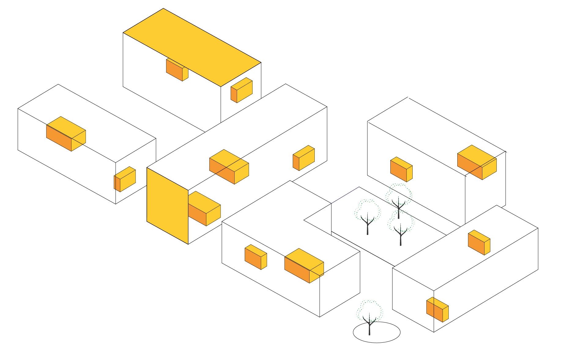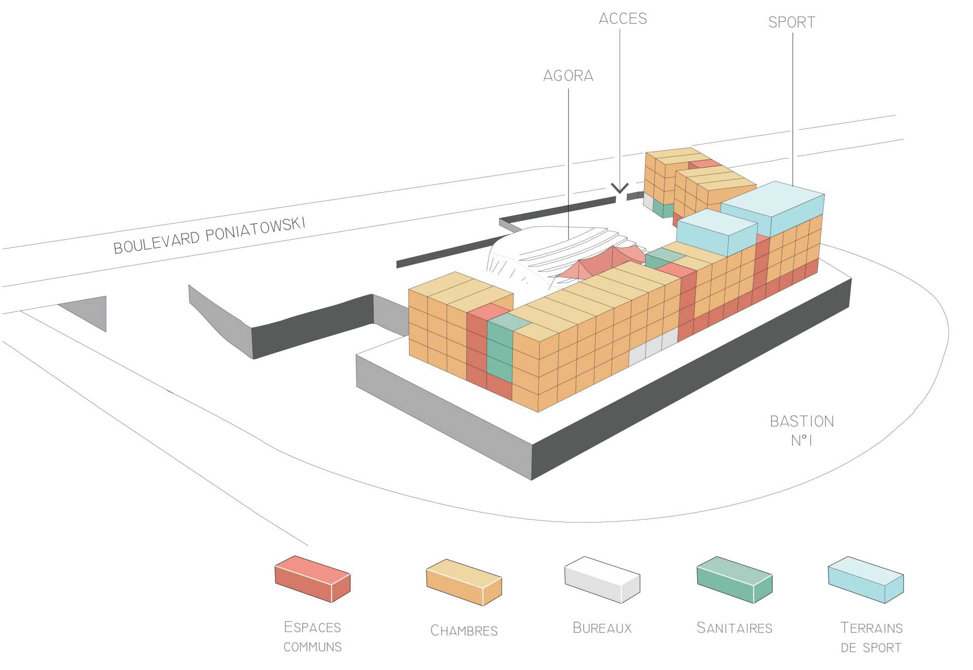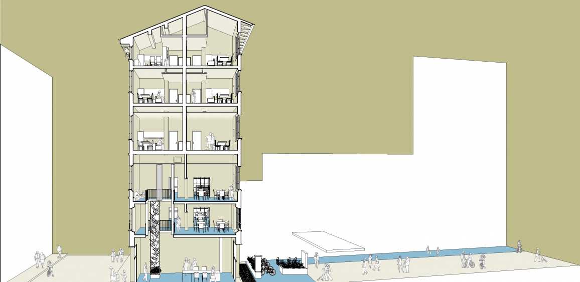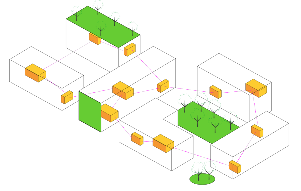 Adattare un edificio preesistente o un lotto libero a un’attività di ospitalità, si rivela comunque un’operazione costosa e non immediata, fattore non compatibile con la disponibilità solo transitoria dei beni in questione. In aggiunta, la destinazione d’uso spesso a carattere non residenziale delle preesistenze, qualora disponibili, e il conseguente notevole impegno ai fini del riadattamento, rappresenta un ostacolo supplementare. Gli edifici insediati in maniera temporanea negli spazi urbani disponibili e i riadattamenti realizzati all’interno delle preesistenze, sono quindi pensati anch’essi come sistemi transitori, predisposti per essere celermente smantellati una volta giunto il momento di avviare le operazioni di cantiere per gli sviluppi a venire.