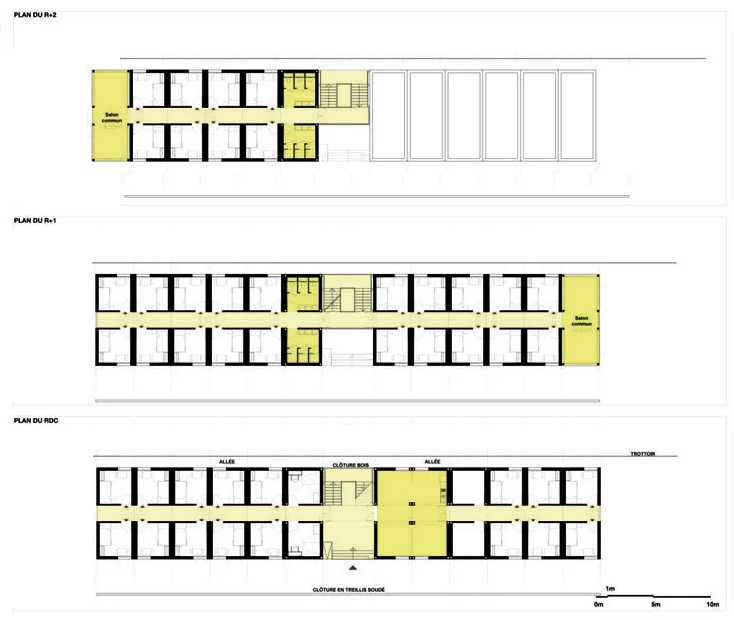 In questo quadro normativo la DIHAL (delegazione interministeriale per l’accoglienza e l’accesso all’abitare) ha pubblicato nel 2015 un opuscolo esplicativo dal titolo “abitare temporaneo, una soluzione per l’accoglienza” redatto da Guillame Hannou (architetto progettista del CHU-La Promesse de l’Aube) e Julien Beller (architetto progettista del centro di Port de la Chapelle) e indirizzato alle associazioni non governative, con lo scopo di fornire tutte le indicazioni utili per ottenere un permesso di costruire precario, tramite cui insediare centri di accoglienza su sedimi non edificabili. L’eccezione alla regola sembra trasformarsi sempre più in norma strutturale nel quadro della gestione dell’accoglienza a Parigi.